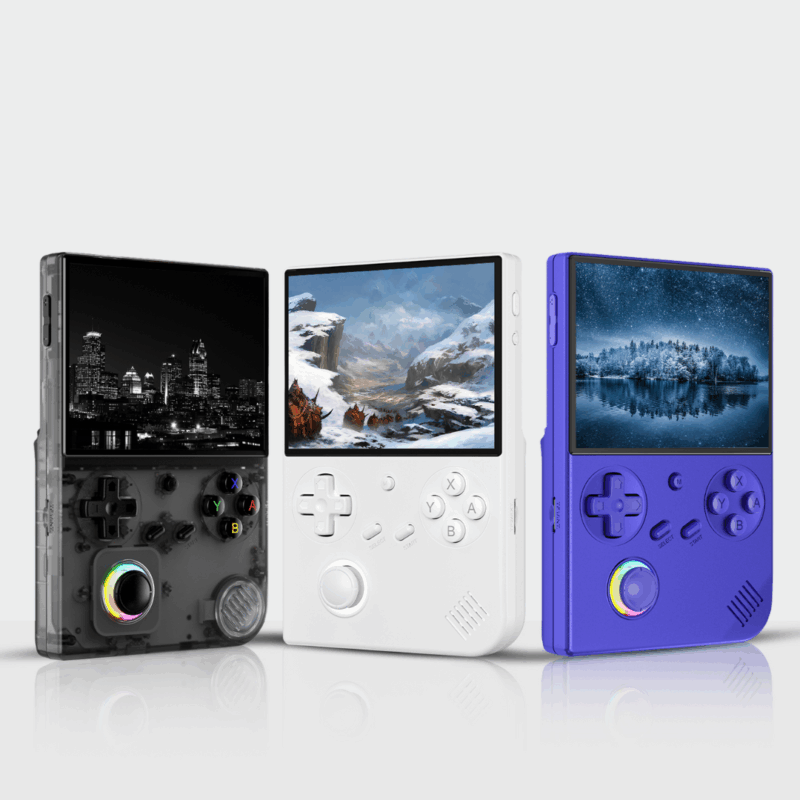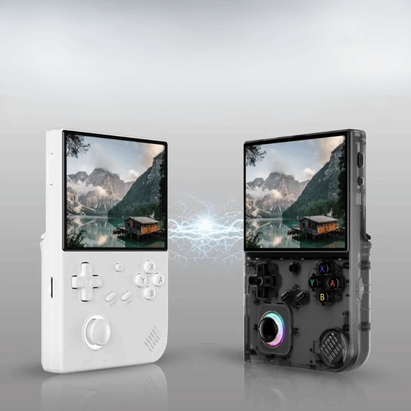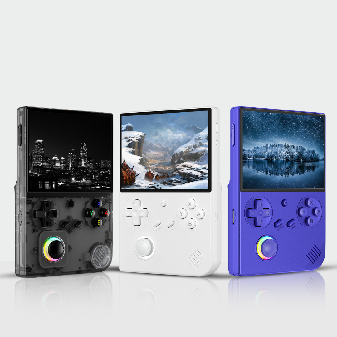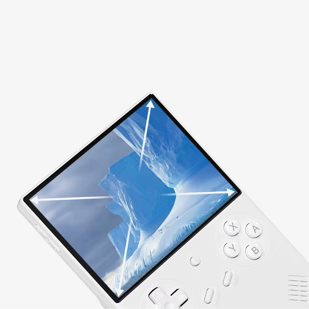 La Anbernic RG40XX V es una consola portátil retro con un diseño compacto y ergonómico en colores Negro Transparente, Blanco y Violeta. Su pantalla IPS de 4.0 pulgadas con una resolución de 640×480 ofrece una experiencia visual clara y vibrante, ideal para juegos retro.