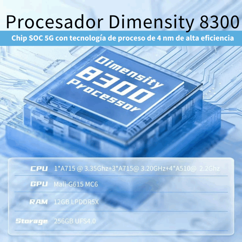 Procesador: MediaTek Dimensity 8300 (1×A715 3.35 GHz, 3×A715 3.20 GHz, 4×A510 2.2 GHz)