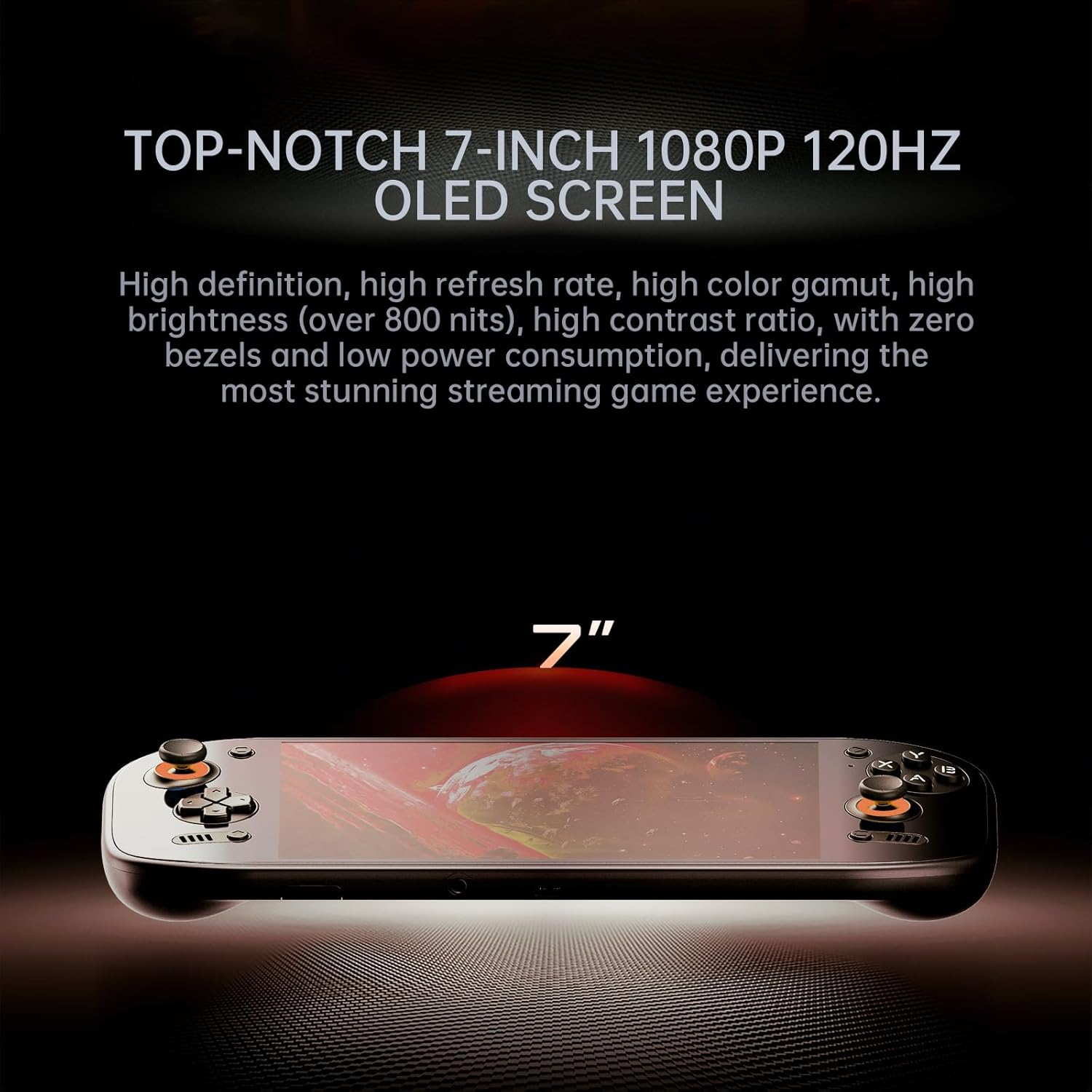 Panel táctil OLED de 7 pulgadas con resolución 1920×1080 y tasa de refresco de hasta 120Hz. Colores vibrantes, negros profundos y gran nivel de brillo para una experiencia visual superior.