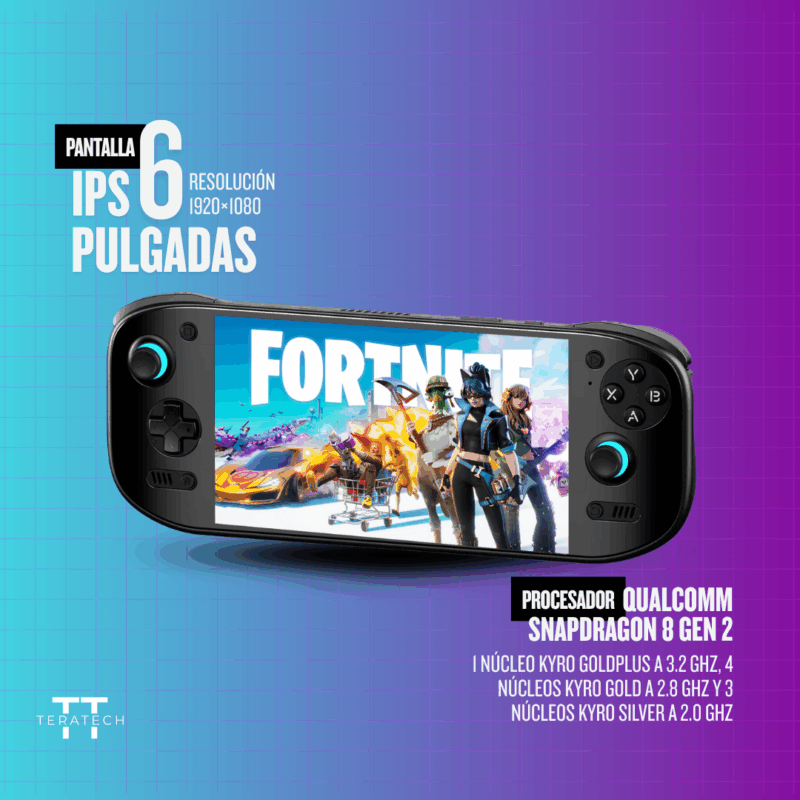 Integra un potente procesador Qualcomm Snapdragon 8 Gen 2 que garantiza un rendimiento superior, incluso en los juegos y emuladores más exigentes. Su pantalla táctil IPS de 6 pulgadas ofrece una resolución Full HD (1080p), brindando una experiencia visual nítida y colores vibrantes. Incluye controles físicos precisos y personalizables, gatillos analógicos, giroscopio, vibración háptica y conectividad Wi-Fi 6 y Bluetooth 5.3 para un rendimiento óptimo en línea y con periféricos.