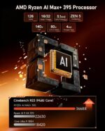 - 🧠 Procesador: AMD Ryzen AI Max+ 395, 16 núcleos y 32 hilos, arquitectura Zen 5, GPU integrada Radeon 8060S y NPU.