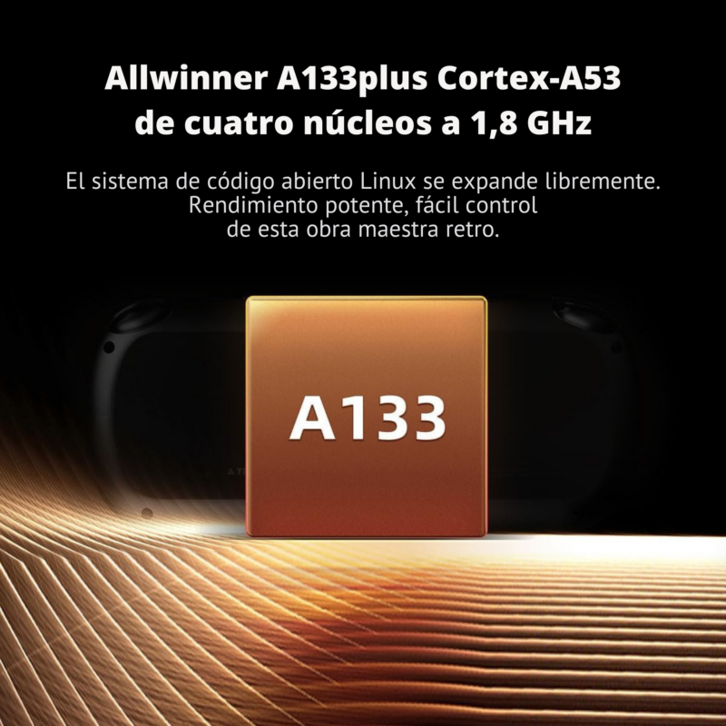 Su pantalla IPS de 4.96 pulgadas brinda una calidad visual sobresaliente, mientras que su procesador Allwinner A133P y su GPU PowerVR garantizan un rendimiento estable incluso en títulos exigentes.