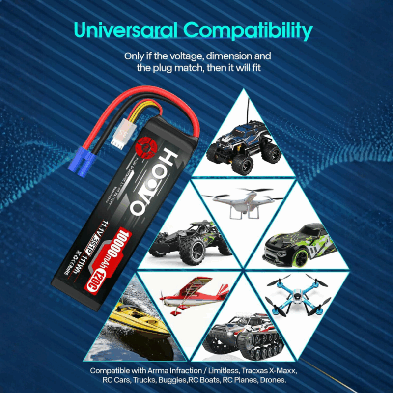 La Hoovo Lipo Battery 3S 10000mAh 120C es la elección ideal para entusiastas de los vehículos y equipos RC que buscan potencia confiable, mayor autonomía y una batería capaz de responder en los escenarios más exigentes.