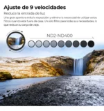 📸 Control total de la luz: Ajusta la cantidad de luz que entra en tu objetivo con el filtro ND variable ND2-ND400, ideal para efectos de larga exposición, paisajes con agua en movimiento o días soleados.