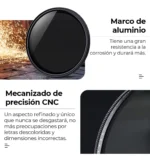 🔧 Construcción duradera: Marco de aluminio ligero y resistente, compatible con lentes de 52mm.
