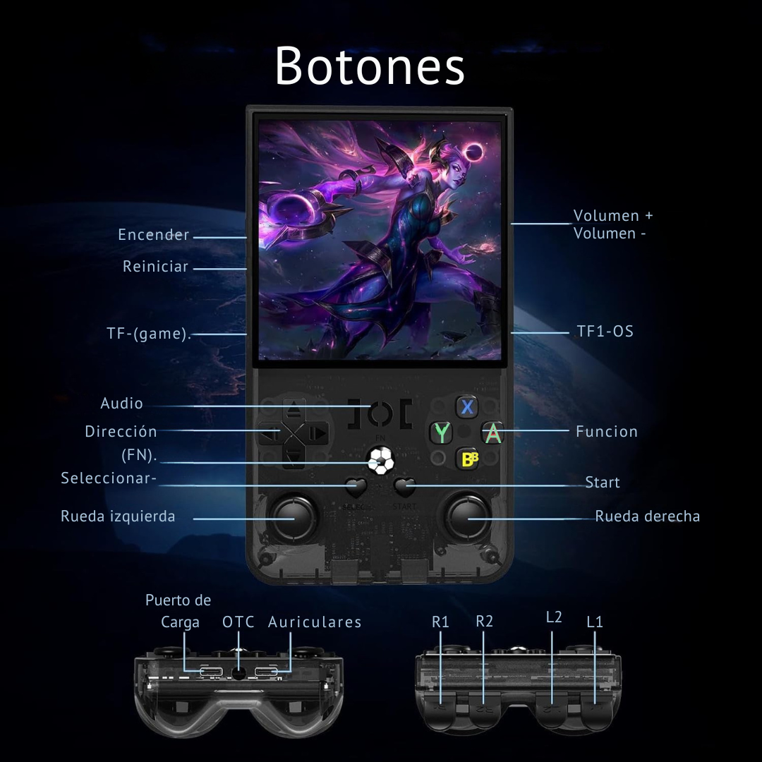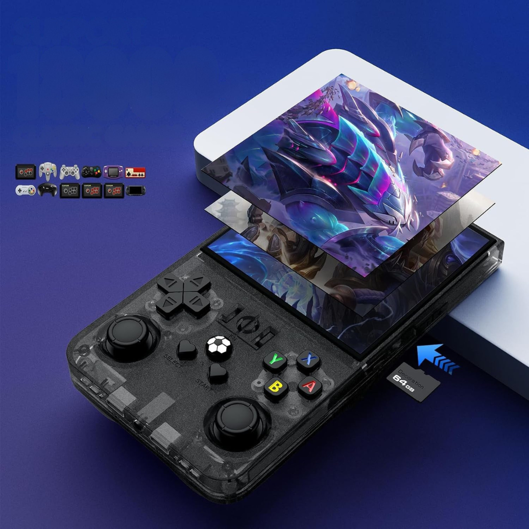 La R36 Max no es solo una consola; es un portal en el tiempo. Diseñada para los entusiastas que buscan potencia y portabilidad, esta versión de 64GB viene optimizada para ofrecer una emulación fluida de las eras más doradas de los videojuegos, desde los 8 bits hasta la era de los 32/64 bits con una fidelidad asombrosa.