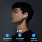 Modo táctil: Cada persona usa un auricular; al tocarlo, se activa la traducción bidireccional en tiempo real.