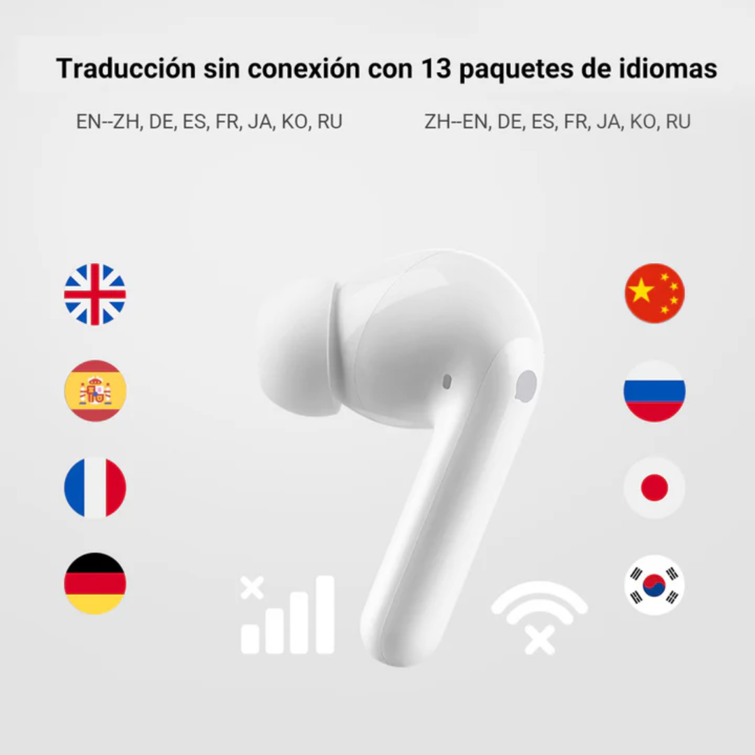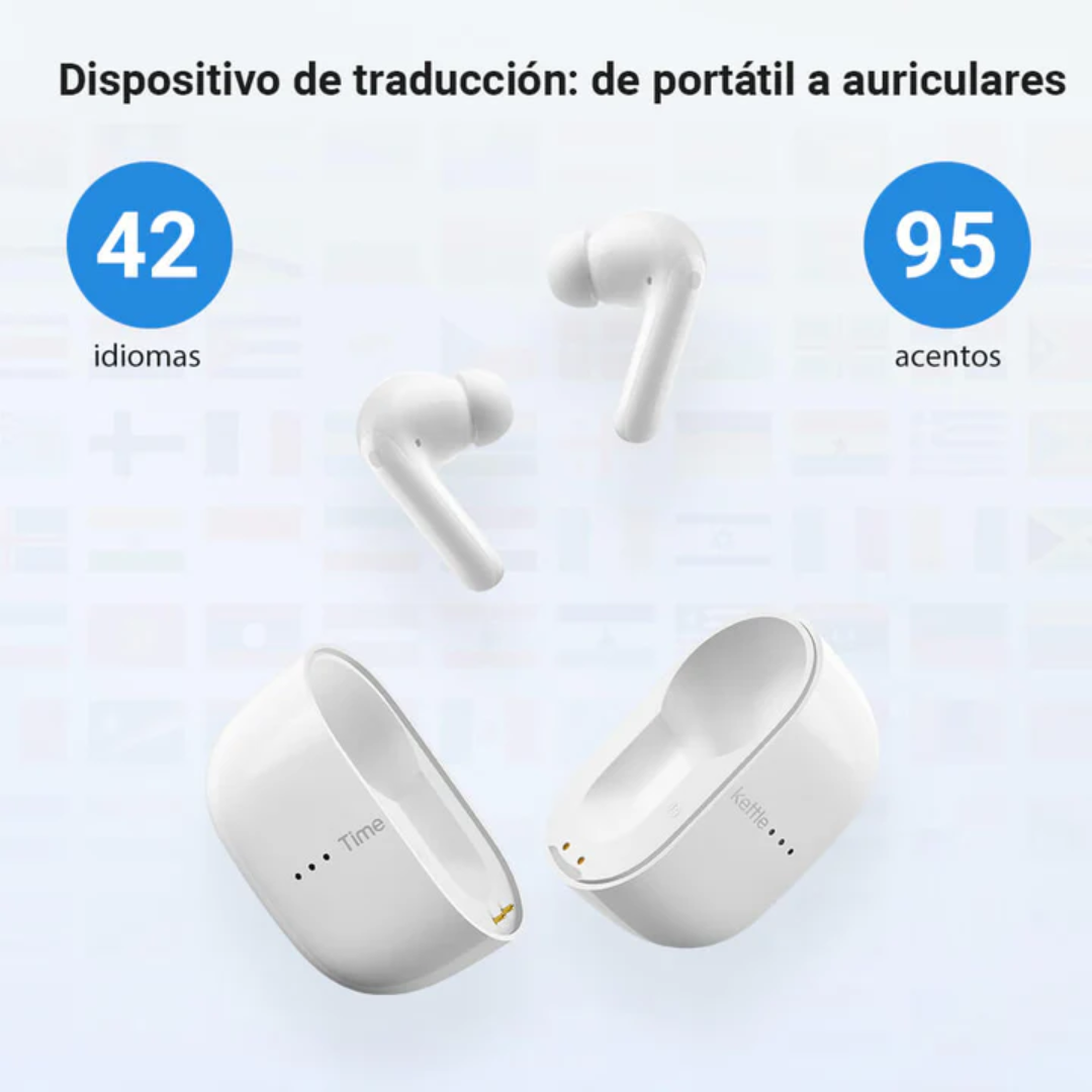 Aplicación Timekettle: Requerida para utilizar las funciones de traducción. Disponible en Google Play y App Store.