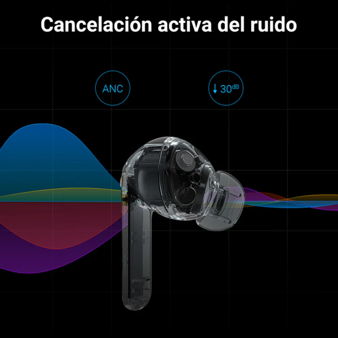 Cancelación activa de ruido (ANC): Hasta 30 dB, proporcionando una experiencia auditiva clara incluso en entornos ruidosos.