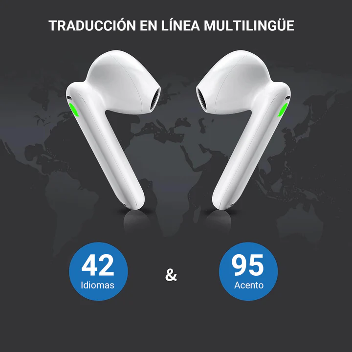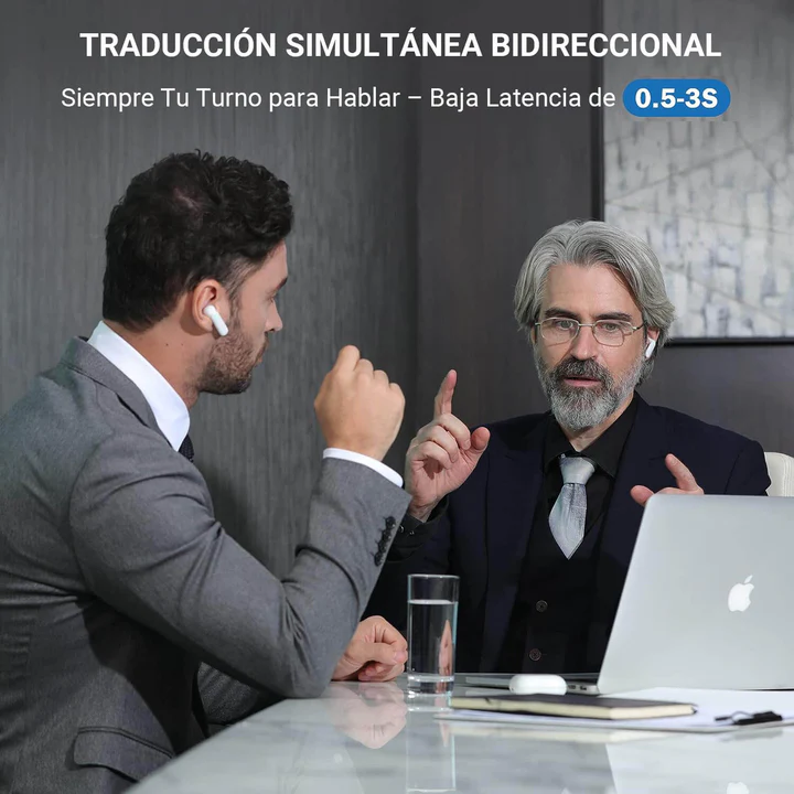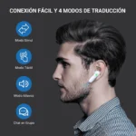 - Modo Altavoz: 1 auricular + 1 aplicación. Solo una persona necesita usar el traductor en tiempo real.