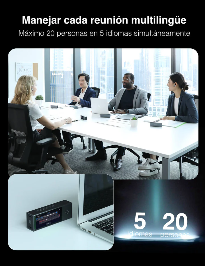 — Interpretación Multi-Vía: Admite hasta 5 idiomas para 20 personas